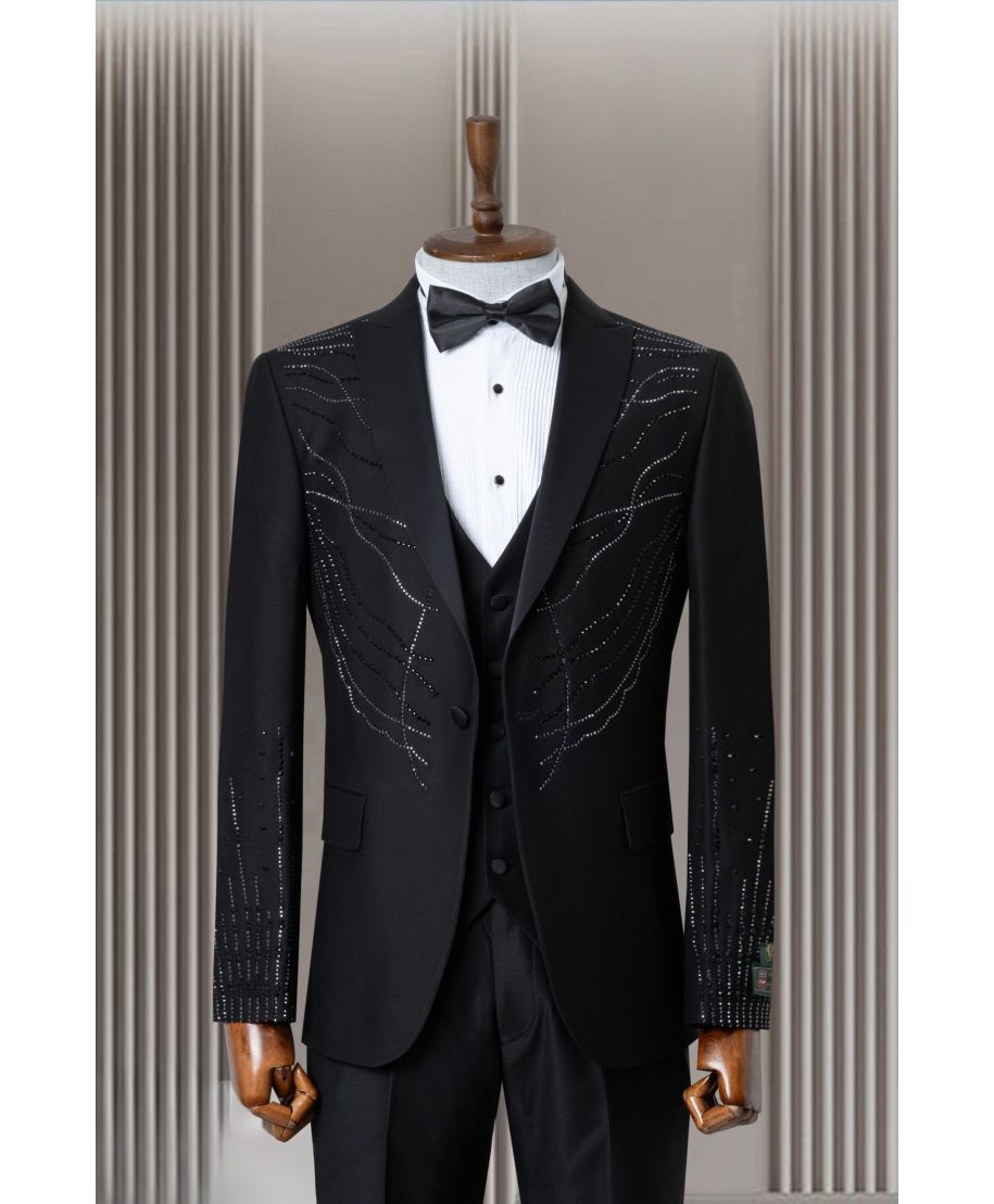 Ekskluzywny Czarny Smoking Męski ze Strassem Luxury – Louisville: Klasa, Styl i Prestiż