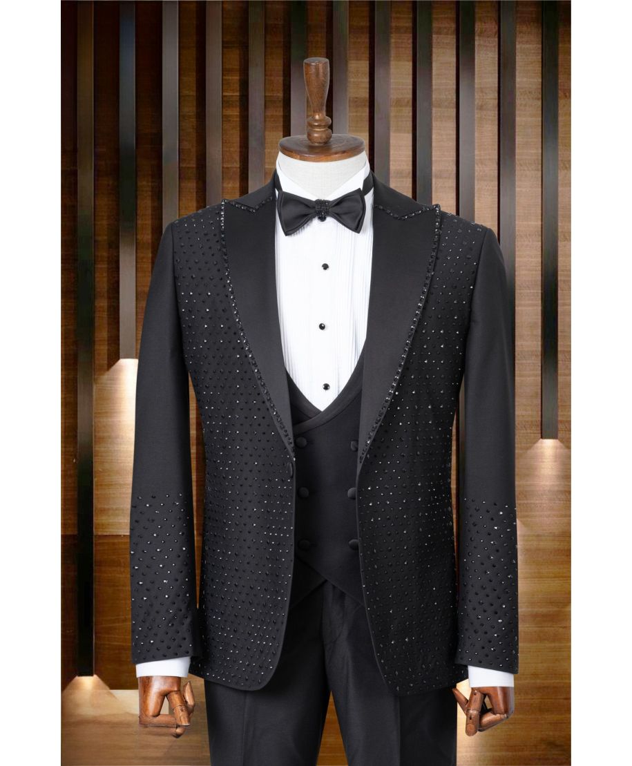 Smoking męski czarny z brylancikami – model elegancki na osiemnastkę i ceremonie jest idealny, gdy liczy się wyjątkowość i prestiż: