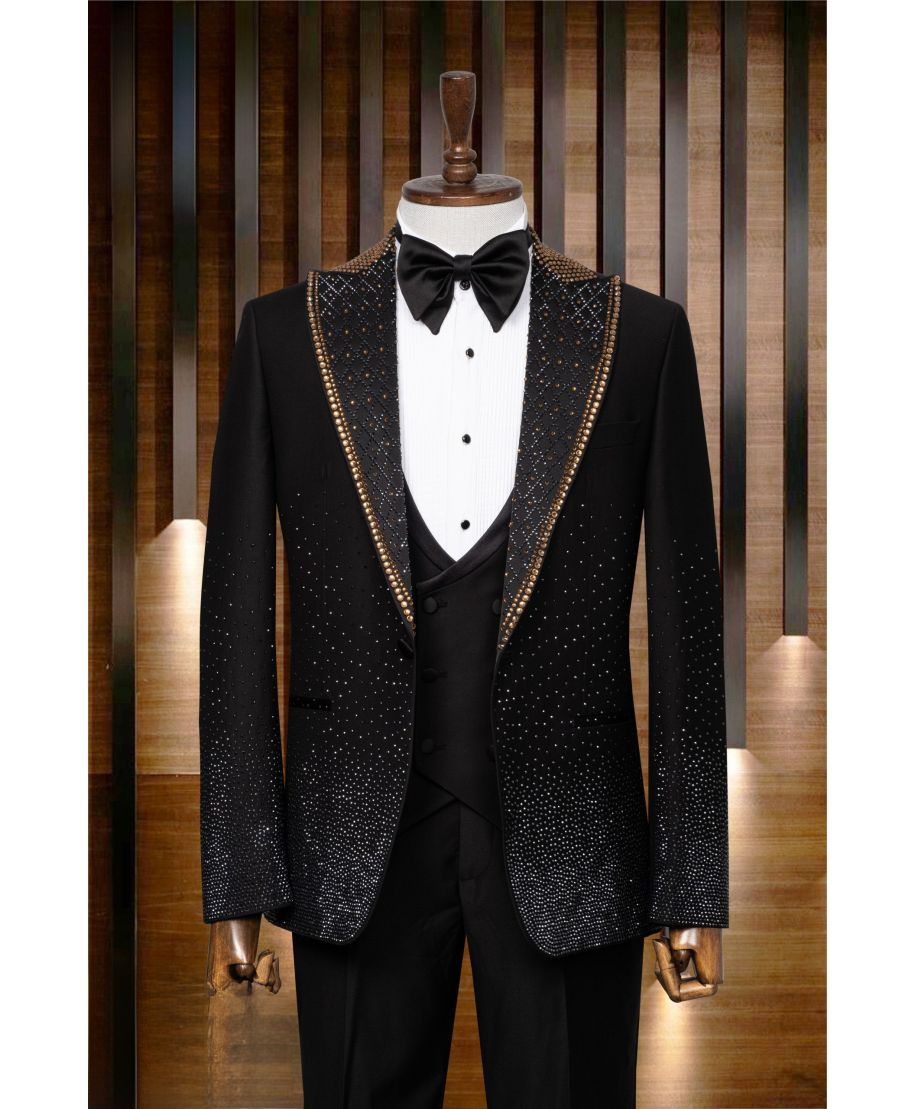 Ekskluzywny smoking New York zdobiony złotymi kryształami – Idealny na wielkie okazje