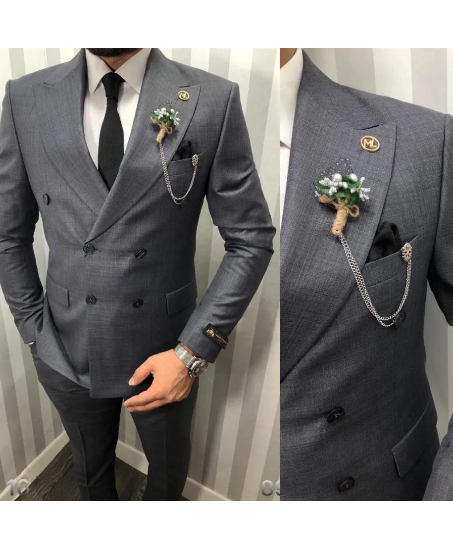 Elegancki garnitur męski w kolorze grafitowej szarości to propozycja dla panów, którzy poszukują połączenia klasycznej formy i nowoczesnych detali. Dwurzędowe zapięcie, dopasowany krój slim fit oraz staranne wykończenia czynią z niego model klasy premium. Garnitur został wykonany z wysokiej jakości tkaniny, która łączy wygodę z trwałością, dzięki czemu doskonale sprawdzi się w każdej sytuacji wymagającej nienagannego wyglądu. To propozycja, która wyróżnia się w kategorii garnitury męskie dostępne w Polsce.