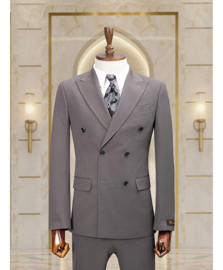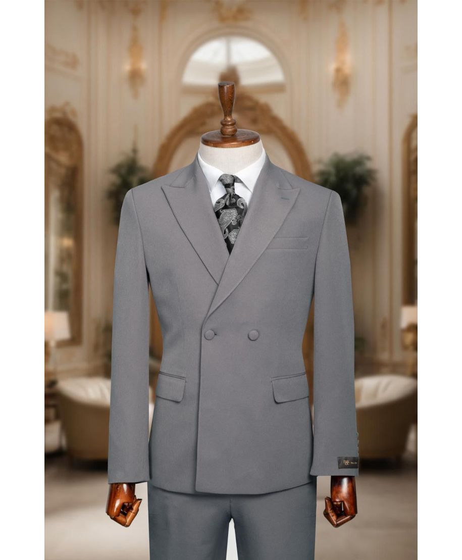Elegancki garnitur męski dwurzędowy- Na lato - Kolor szary – Model Joel