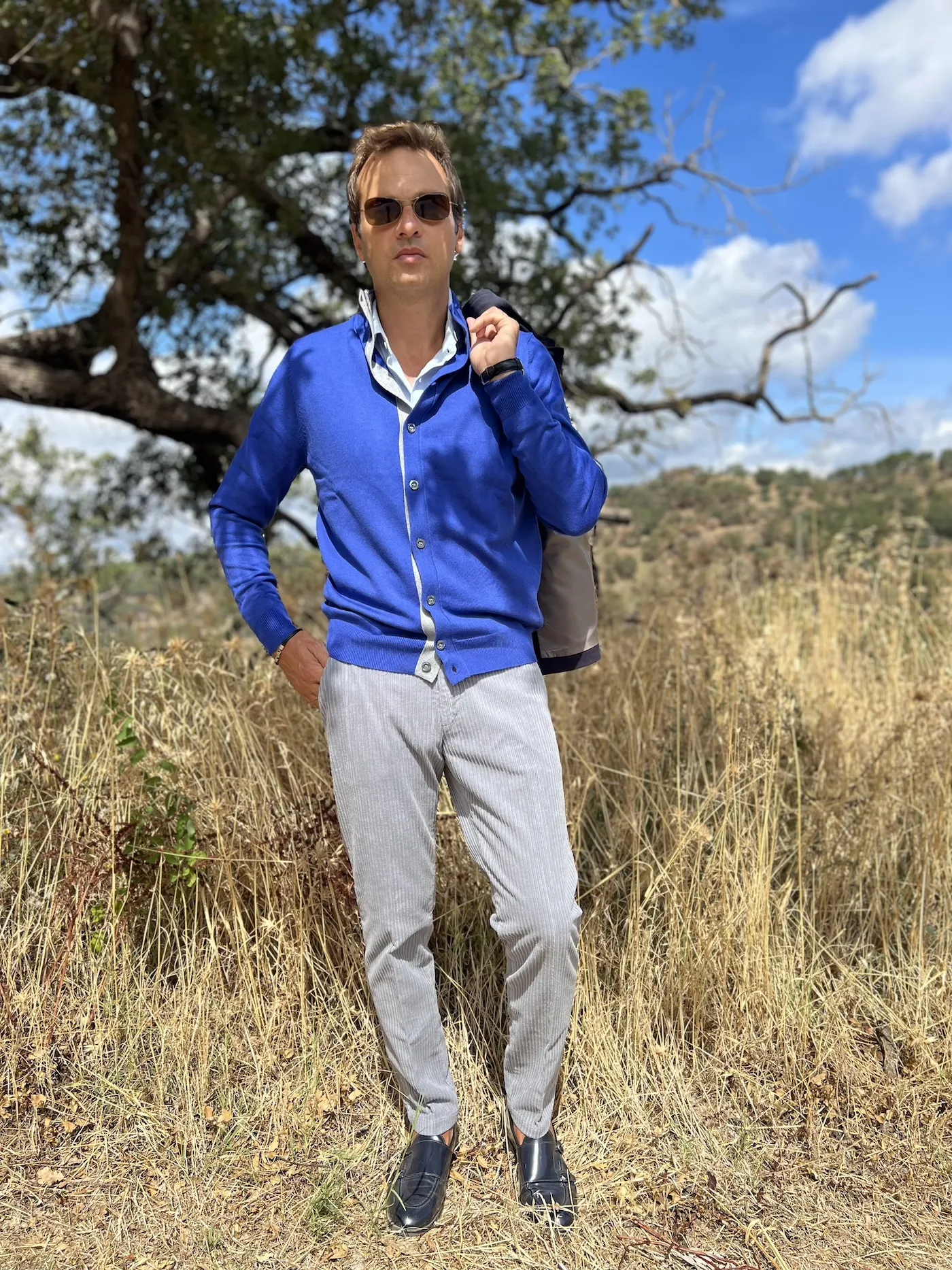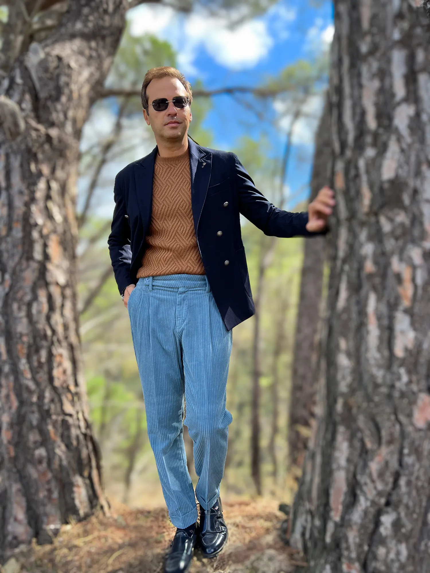 Błękitne męskie spodnie z aksamitu – Bit- luksusowy styl włoskiej marki Paul Miranda