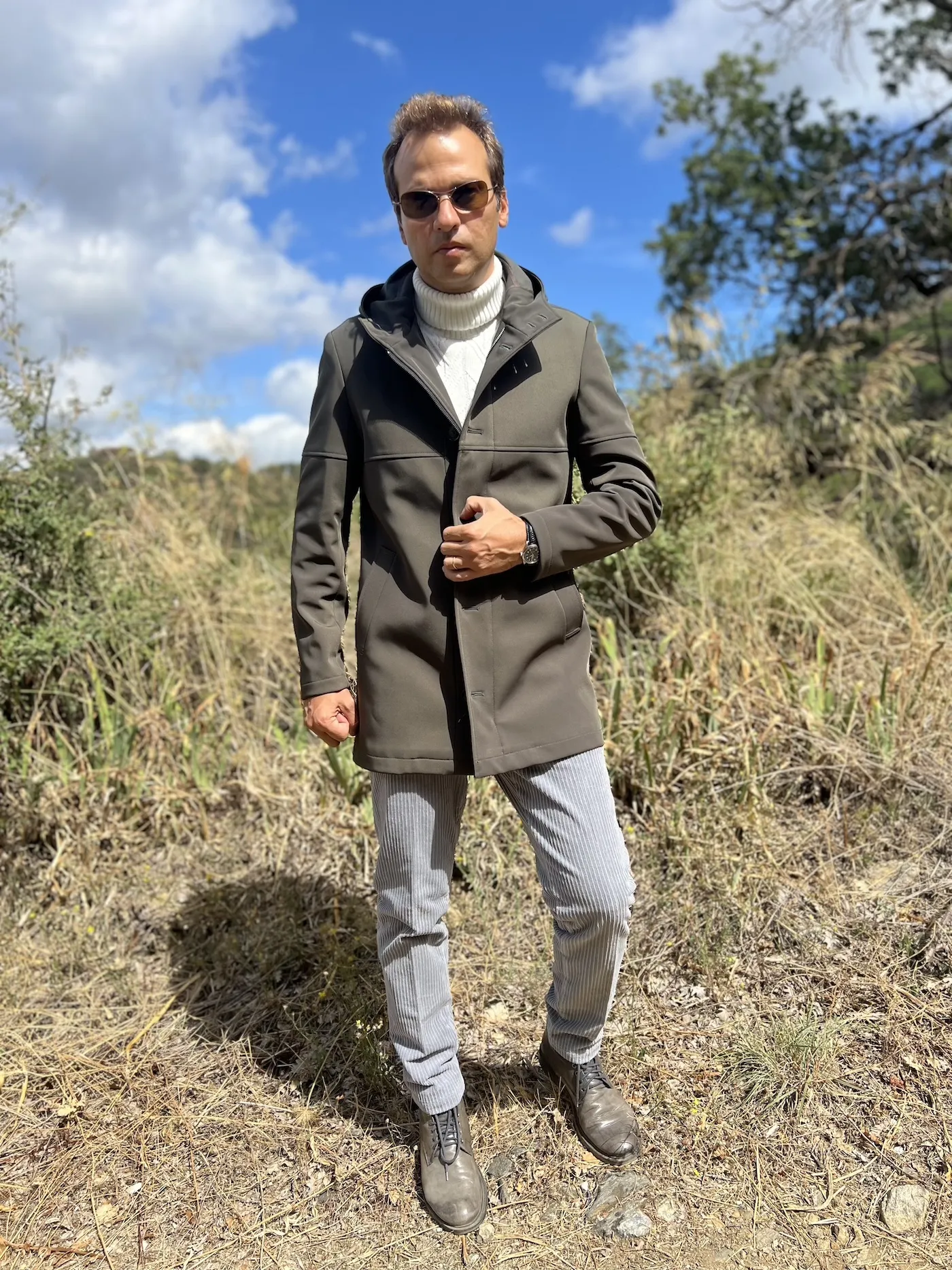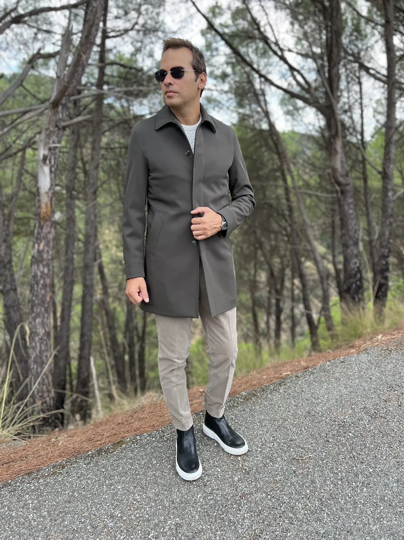 Trench męski zielony militarny – Paul Miranda - Elegancki płaszcz Made in Italy